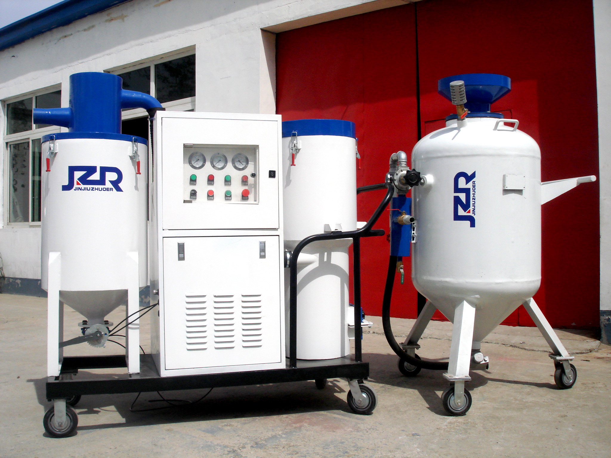 JZF系列噴砂機(jī)是一種一機(jī)多用的噴砂設(shè)備,它同時具備開放式噴砂機(jī)、自動循環(huán)回收式噴砂機(jī)、吸砂機(jī)、除塵器的 幾種功能。它可以單獨啟用其中任一功能。當(dāng)開放式噴砂機(jī)作業(yè)時,如果同時啟動回收系統(tǒng),即成環(huán)保 循環(huán)回收式噴砂機(jī),可以無塵噴砂作業(yè),避免因粉塵污染對工作現(xiàn)場和人員健康造成危害,大大降低了勞動強度,提高了工作效率 。廣泛適用于集裝箱制造修理、造船和修船,工廠維護(hù)以及需要野外施工、搬運、進(jìn)入大型工件、油罐、 車體內(nèi)部噴砂除銹作業(yè)。(查看噴砂機(jī)視頻)